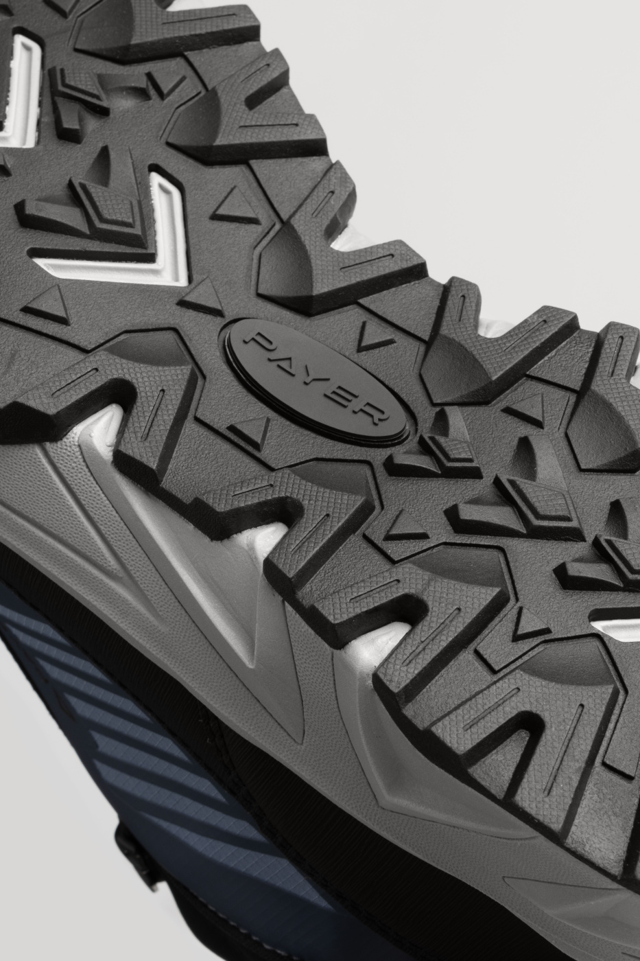 • мембранный чулок"    "Треккинговые ботинки PAYER Памир — идеальный выбор для активных путешественников, которые ценят надежность и комфорт. Верх из прочного нейлона с влагозащитной пропиткой обеспечивает защиту от внешних воздействий, а удобная система шнуровки с крючками-зацепами в верхней части позволяет быстро и легко регулировать посадку. Шнурки водоталкивающие, содержат  мультифиламентную нить, не растягиваются, что гарантирует долговечность.